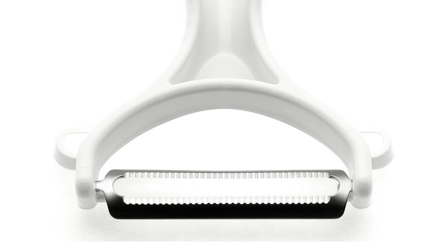 Poleg izredno ostrega noža lupilnik odlikuje tudi ergonomski ročaj, ki se odlično prilega vsaki roki. Čvrst oprijem držala zagotavlja prijetno in učinkovito lupljenje vseh vrst zelenjave in sadja, hkrati pa zmanjša možnosti, da bi se porezali.