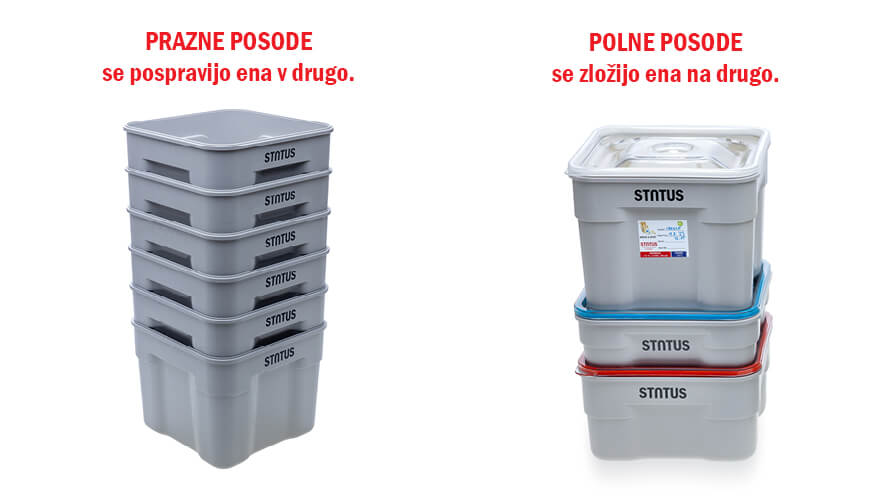 - Posebna odlika posod je možnost zlaganja ene na drugo. S tem maksimalno izkoristite prostor v kuhinji.