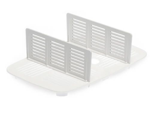V setu poleg dveh posod dobite tudi odcejalna podstavka s pregradama, ki sta namenjena shranjevanju vlažnih in občutljivih živil. Odcejalniki so idealni za sveže oprano solato, ki tako ne bo stala v vodi in počrnela. S pregradami pa lahko ločite različne vrste živil med seboj. Arome se v vakuumu ne širijo, zato shranjen kruh ne bo imel vonja po salami.